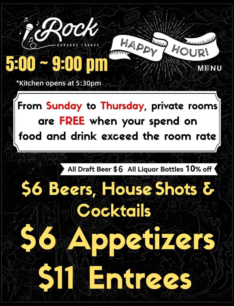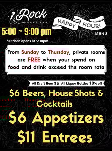 5pm-9pm Monday to Thursday, we will WAIVE your room fee if you spend on food and drink exceed the room rate!